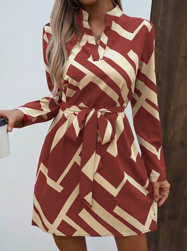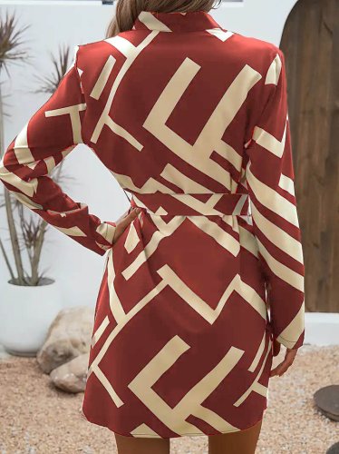• Kadın uzun kollu v yakalı desenli belinde kuşaklı dalgıç elbise