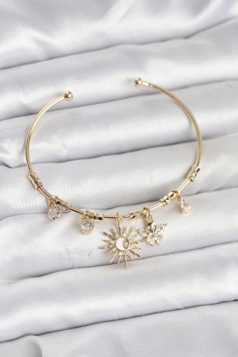 • Güneş Charmlı Gold Renk Pirinç Kadın Bileklik