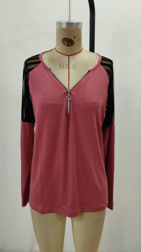 • Kadın uzun kollu yakadan fermuarlı viskon bluz