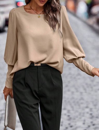 • Kadın uzun kollu yuvarlak yakalı düğmeli ithal krep bluz
