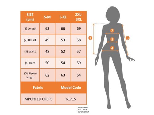 • Modelin Ölçüleri: Boy:165, Kilo:55, Göğüs:90, Bel:72, Kalça: 100