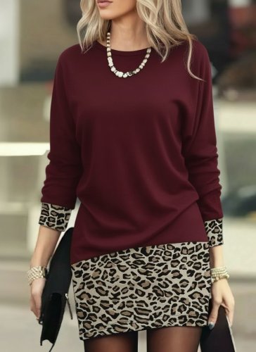 • Kadın uzun kollu bisiklet yaka üst viskon iki iplik alt leopar desenli mini elbise